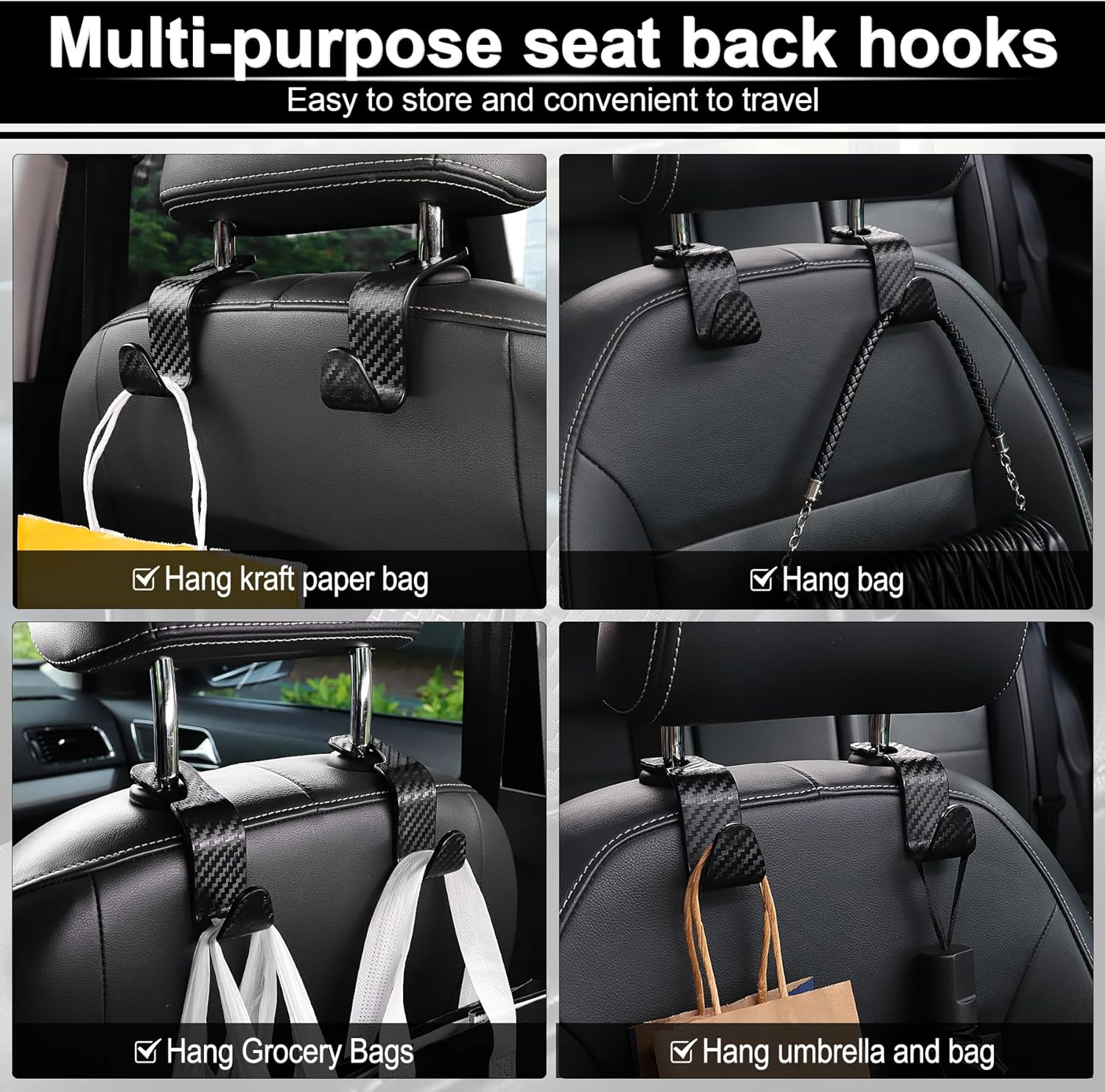- Organize car space : it converts your car’s headrest into a storage space, help you keep your car interior perfectly clean and organized, the headrest hook can hang groceries, handbags, purses, schoolbags, umbrellas, water bottles, shopping bags, baby supplies and so on. Don't need to worry about your shopping bags being placed on the floor or seat rolling around and spilling