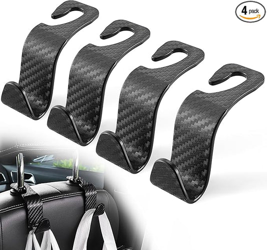 Car Seat Headrest Hook (A Pack of 4 Hanger) Universal Storage Organizer for Handbag, Purse, Coat ; fit Universal Vehicle Car -Black S Type